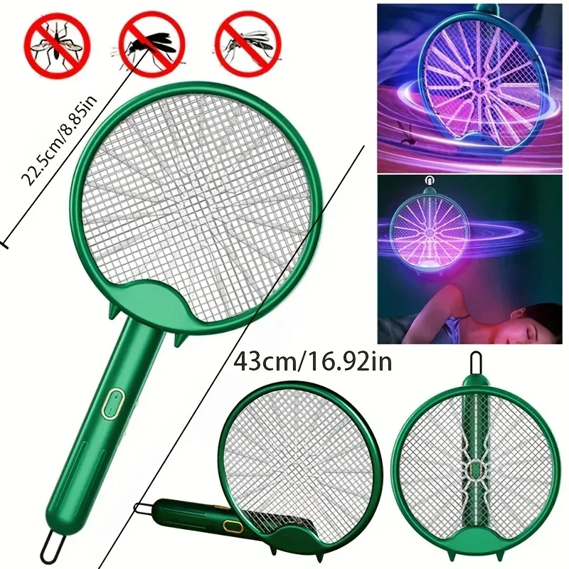 USB Bug Zapper Racket Foldable UV Light Electric Fly Swatters Rotatable 800mAh 5-Layer Safety Mesh Pest Control for Home Bedroom